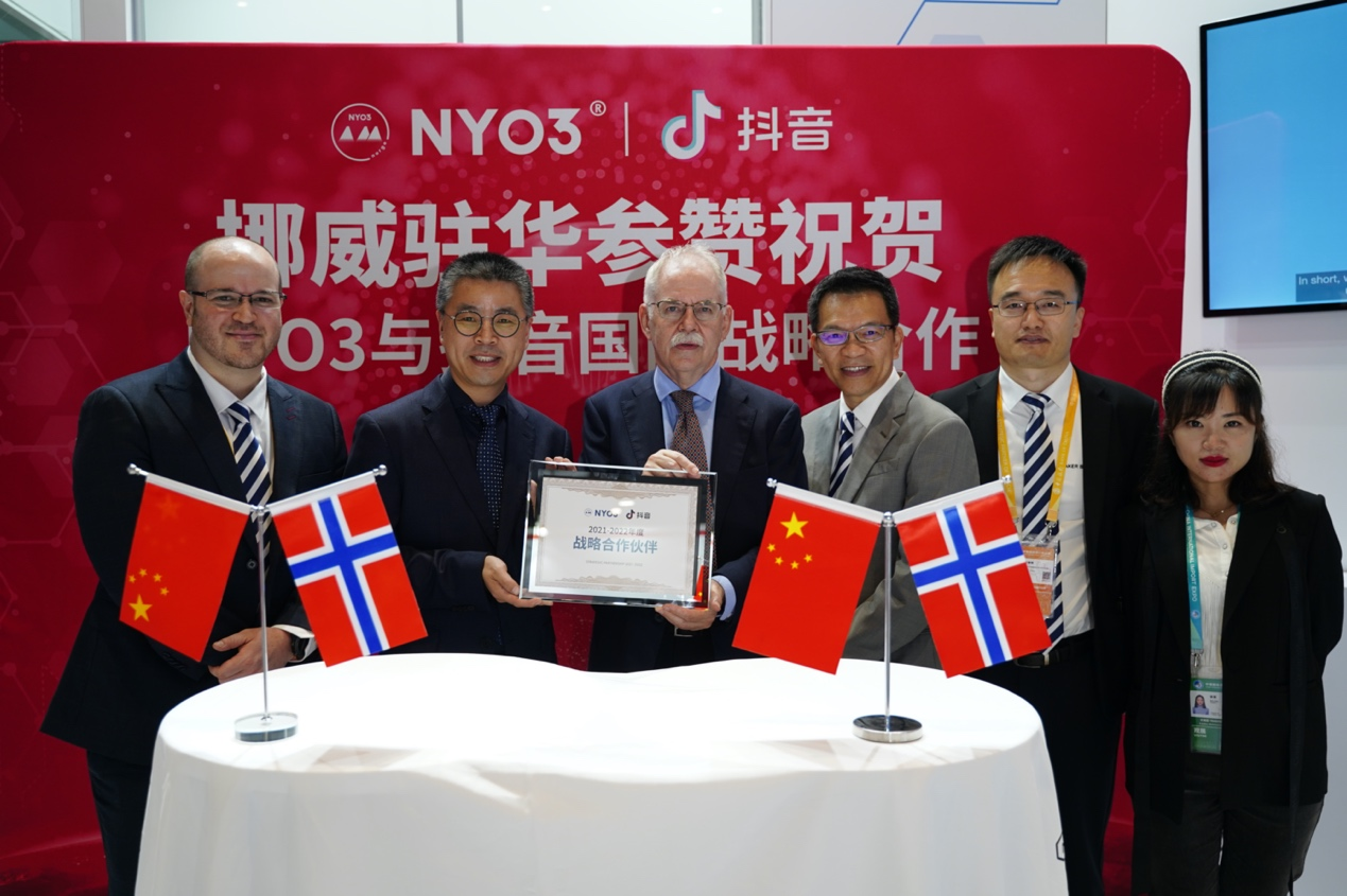 在进博会现场,海内外嘉宾、媒体还共同见证了NYO3与抖音国际的战略合作,见证NYO3成功入驻抖音全球购平台。至此,在抖音全球购的膳食营养补充剂细分品类中,挪威品牌NYO3与双心、blackmores、movefree、swisse、汤臣倍健等成为抖音“全球六大海外膳补合作品牌”。